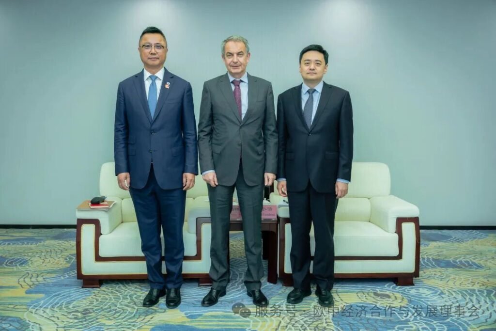 2024年7月4日,欧中经济合作与发展理事会主席、西班牙前首相萨帕特罗在北京会见中共中央对外联络部部长助理马辉。西班牙驻华大使玛尔塔·贝坦索斯、欧中经济合作与发展理事会理事长潘锋共同出席。